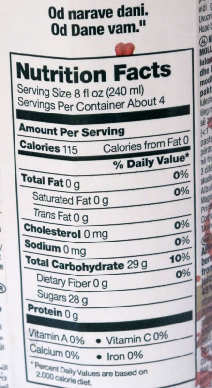 | Ime izdelka: | Sadni nektar iz jagod in jabolk iz jagodne in jabolčne kaše ter zgoščenega jabolčnega soka. Sadni delež: najmanj 45 %. |