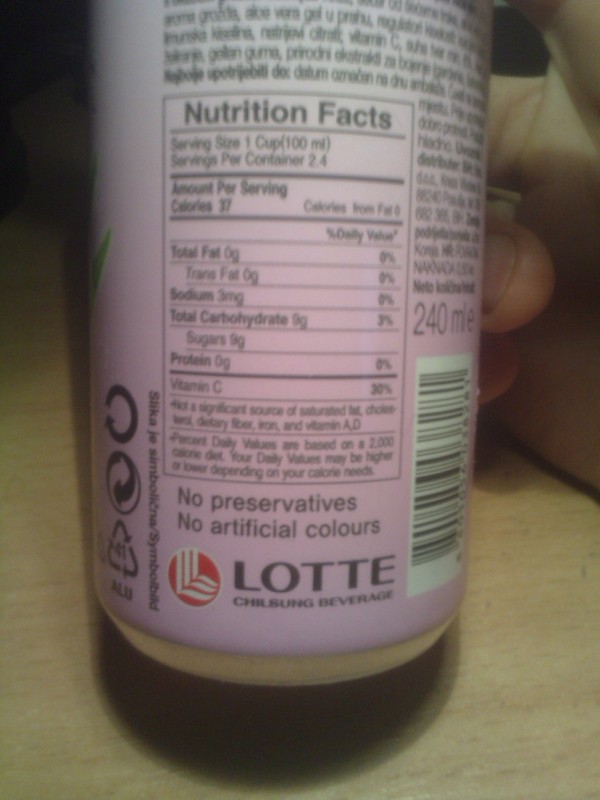 | Blagovna znamka, ime: | Lotte Aloe Vera Grape flavour | |