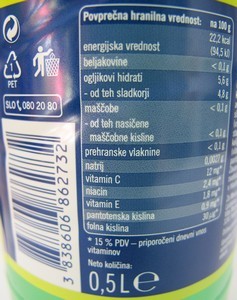 | Blagovna znamka, ime: | Mercator izotonik limona, grenivka - pijača s sladkorjem in sladili | |