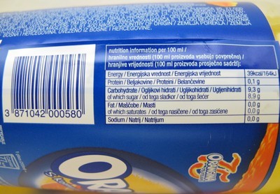 | Ime izdelka: | Gazirana, osvežilna brezalkoholna pijača iz zgoščenega soka pomaranče in drugih agrumov | |