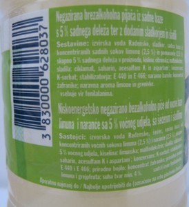 | Ime izdelka: | Negazirana brezalkoholna pijača iz sadne baze s 5% sadnega deleža ter z dodanim sladkorjem in sladili | |