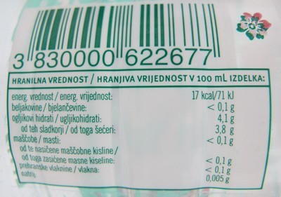 | Ime izdelka: | Negazirana brezalkoholna pijača z nizko energijsko vrednostjo | |
