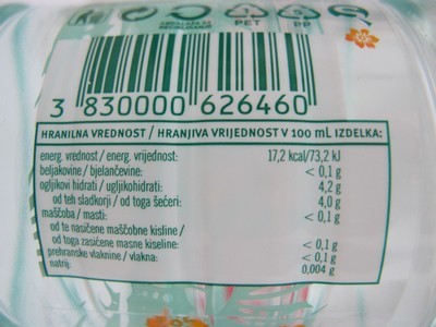 | Ime izdelka: | Negazirana brezalkoholna pijača z nizko energijsko vrednostjo | |