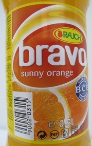 Rauch bravo pomaranča, pijača s sladkorjem in sladili