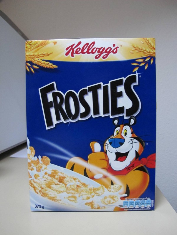| Blagovna znamka, ime: | Kellogg's Frosties, koruzni kosmiči, glazirani s sladkorjem | |