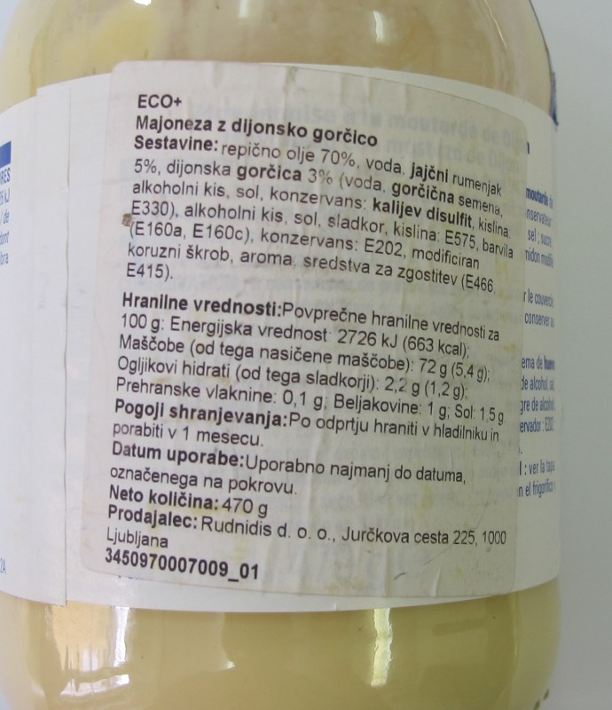 | Blagovna znamka, ime: | €.c.o. +, Majoneza z dijonsko gorčico | |