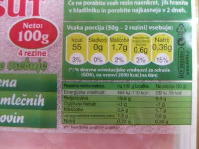| Energijska vrednost | 464 / 110 kJ/kcal |