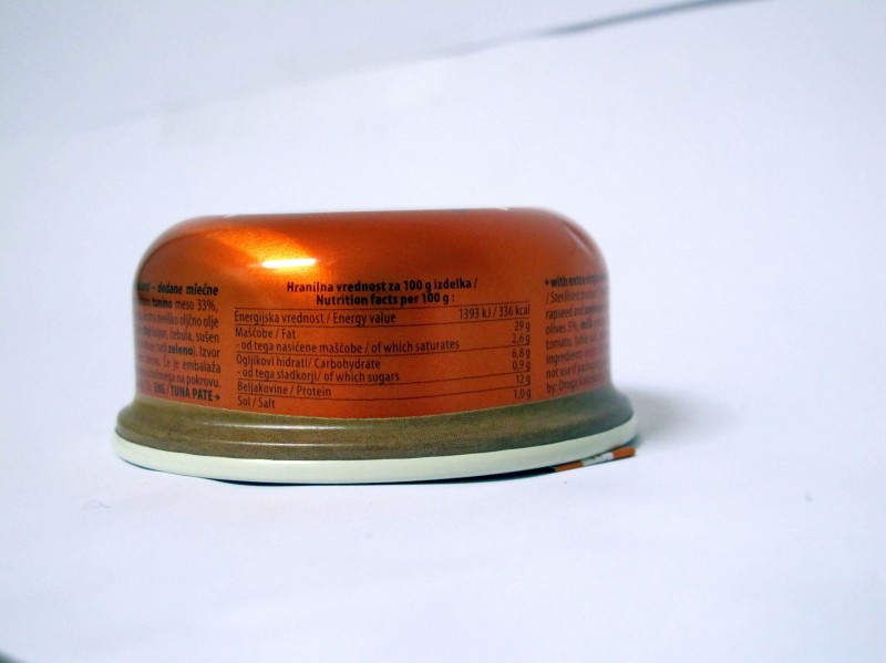 | Ime izdelka: | Tunina pašteta z ekstra deviškim oljčnim oljem in olivami - dodane mlečne beljakovine |