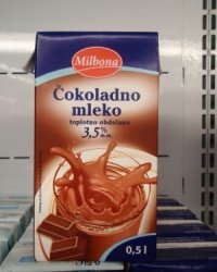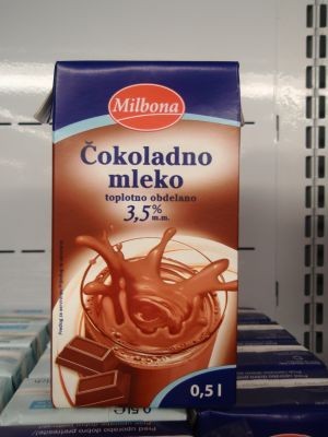 | Ime izdelka: | Čokoladno mleko iz polnega mleka s 3,5% maščob v mlečnem deležu, (UVT) na ultra visoko temperaturo segreto |