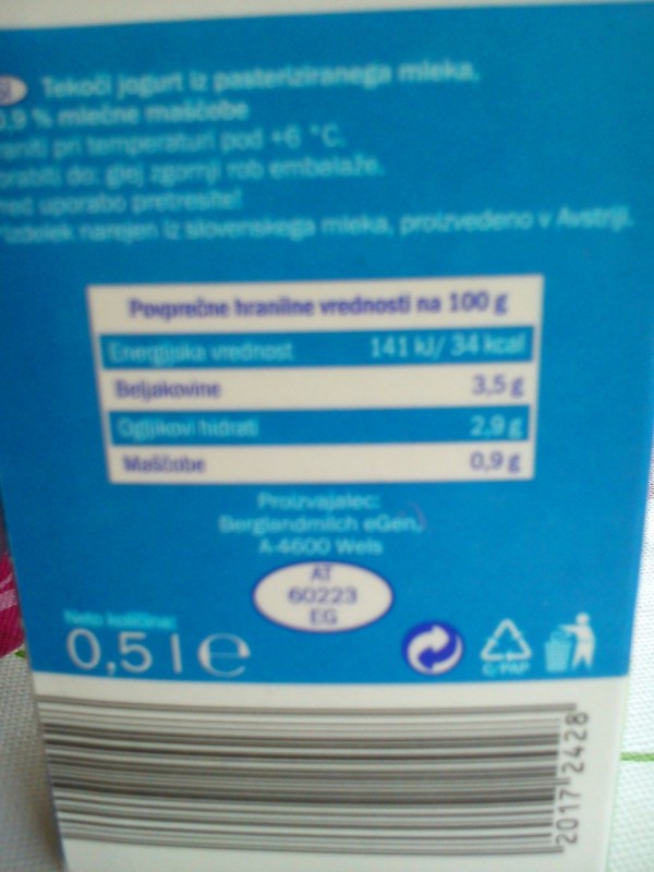 | Blagovna znamka, ime: | Pilos, jogurt z manj maščobe | |