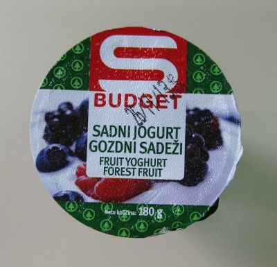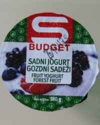 Jogurt iz pasteriziranega mleka, sladkor, sadni pripravek 10 % (voda, bezgove jagode 18 %, koncentrat kaše črnega ribeza 7 %, koncentrat jagodne kaše 5 %, borovnice 5 %, maline 5 %, sladkor, modificirani škrob, gostilo: karagenan; konzervans: kalijev sorbat; arome, ki so identične naravnim, sredstvi za uravnavanje kislosti: tinatrijev citrat, citronska kislina; barvilo: antocianini).