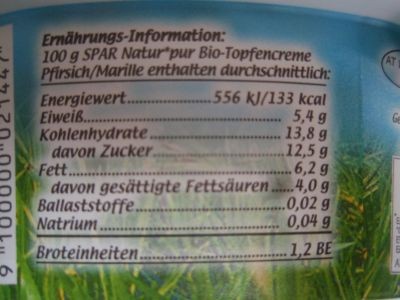 | Blagovna znamka, ime: | Natur Pur Bio Topfen Creme, kremna skuta breskev / marelica | |