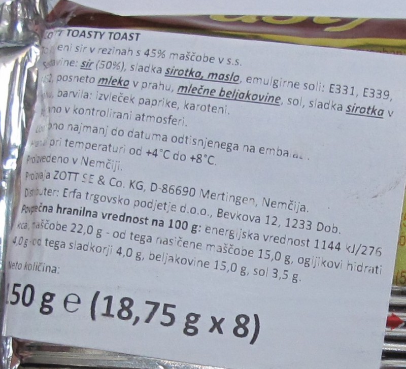 | Proizvajalec, trgovec: | Zott se&Co. KG, Nemčija |