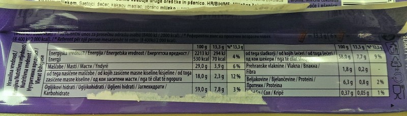 | Blagovna znamka, ime: | Milka, alpine mlik, mlečna čokolada | |
