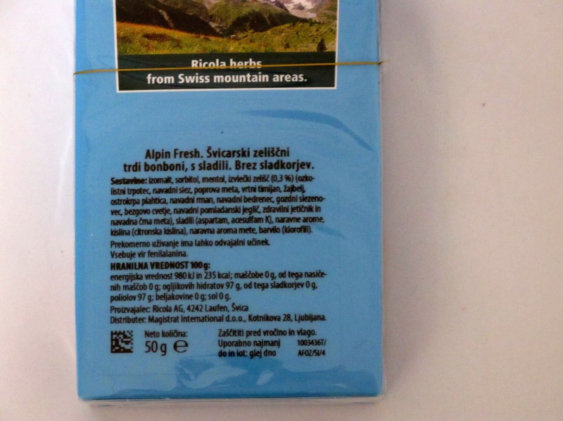 | Blagovna znamka, ime: | Ricola, alpin fresh, bonboni | |