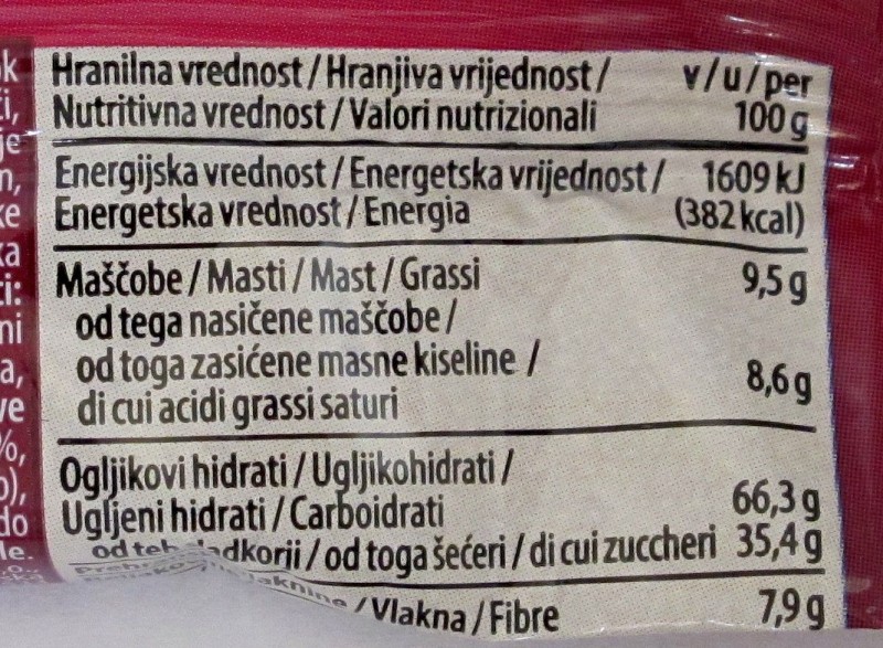 | Energijska vrednost | 1609 / 382 kJ/kcal |