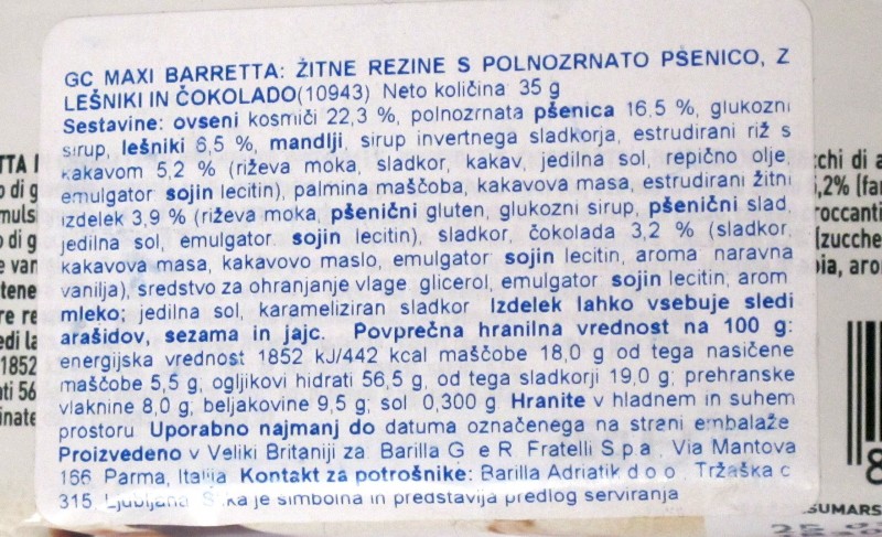 | Proizvajalec, trgovec: | Proizvedeno v VB za Barilla G.e.R., parma, Italija |