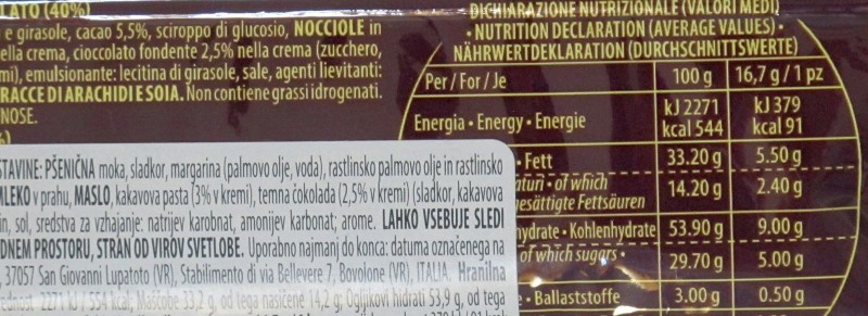 | Ime izdelka: | Kakavovo fino pekovsko pecivo, polnjeno s čokoladno kremo (40%) |