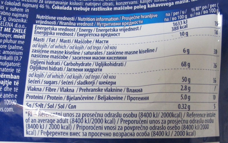 | Ime izdelka: | Biskvitni keks s sadnim želejem (35%) in čokolado (20%) | |