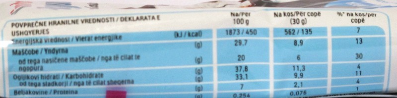 | Ime izdelka: | Biskvit z mlečnim polnilom oblit s čokolado | |