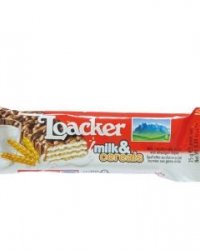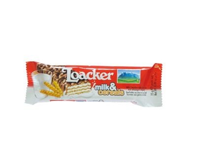 Loacker milk&cereals, vafelj polnjen z mlečno kremo (56%) in žitaricami |