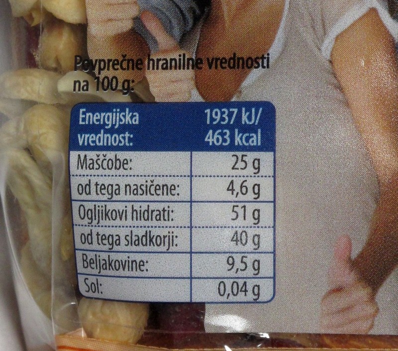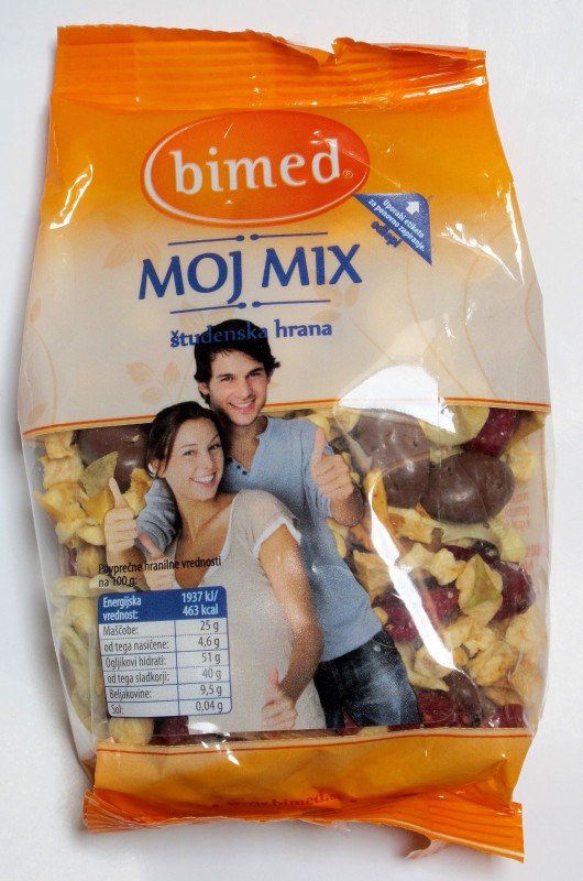 | Ime izdelka: | Mešanica oreščkov, suhega sadja in čokoladnih bonbonov z rozinami |