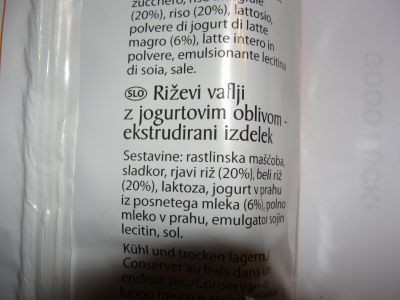 | Ime izdelka: | Riževi vaflji z jogurtnim oblivom - ekstrudirani izdelek |