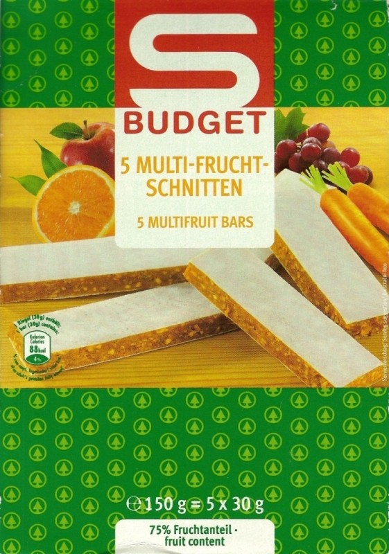 S-Budget 5 Multi-Frucht-Schnitten, sadne ploščice iz suhega sadja |