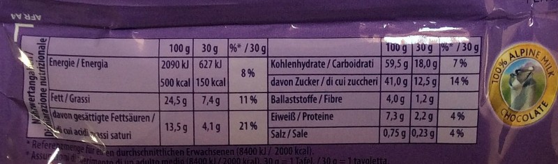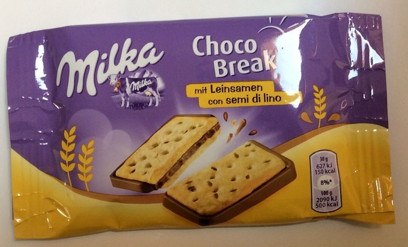 | Ime izdelka: | Alpska mlečna čokolada s keksom (13%) s pšeničnimi otrobi posuto z lanenimi semeni |